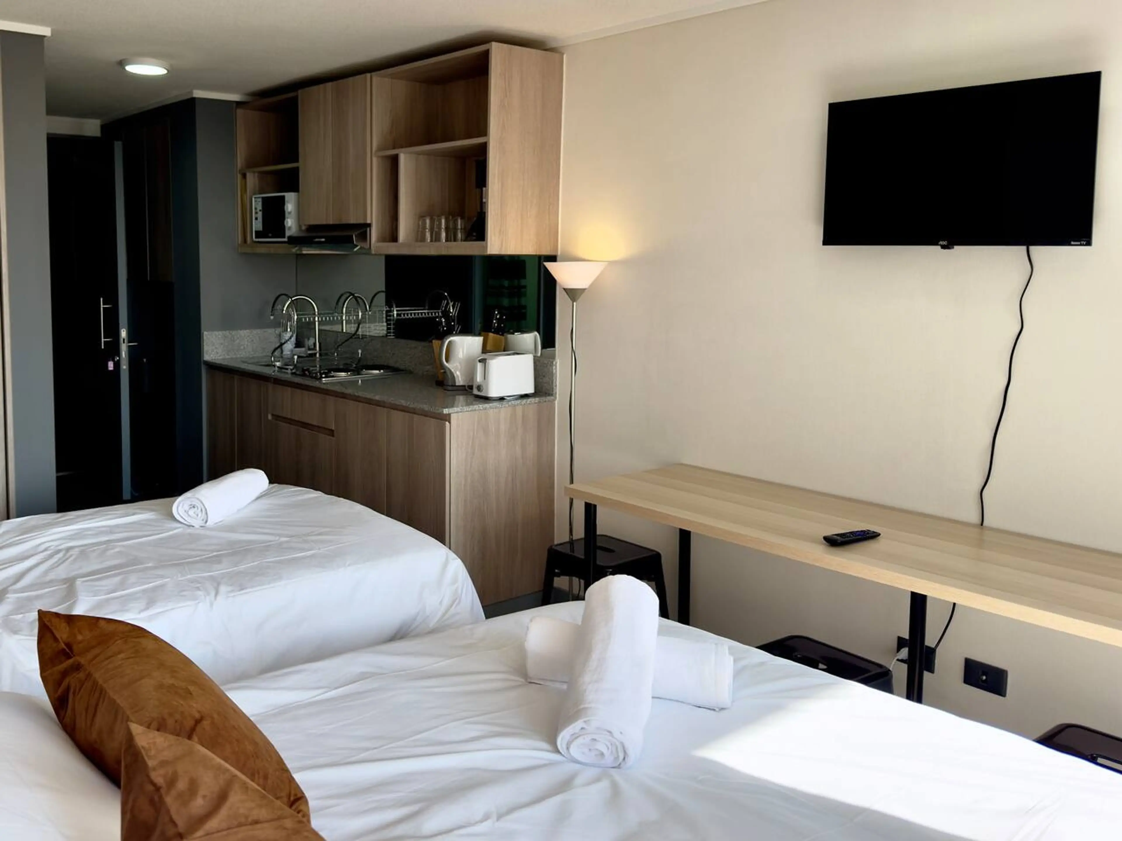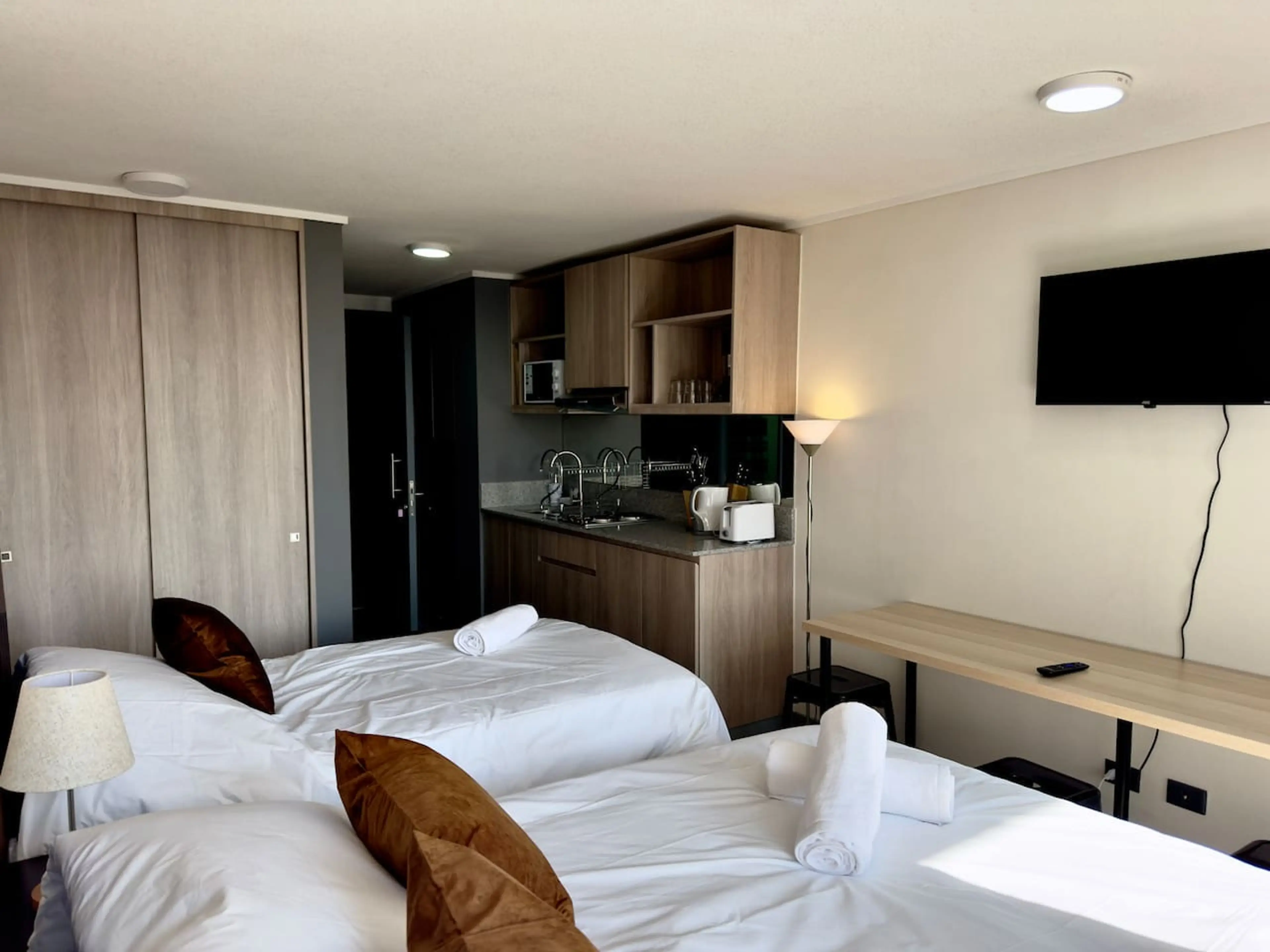 Ubicado en pleno centro de Santiago, este estudio amplio combina comodidad y funcionalidad, ideal para parejas, familias o viajeros por trabajo. Equipa cama doble, cama plaza y media, Wi-Fi de fibra óptica y un mesón perfecto para comer o trabajar, a pasos del histórico Paseo Bulnes y del vibrante B...