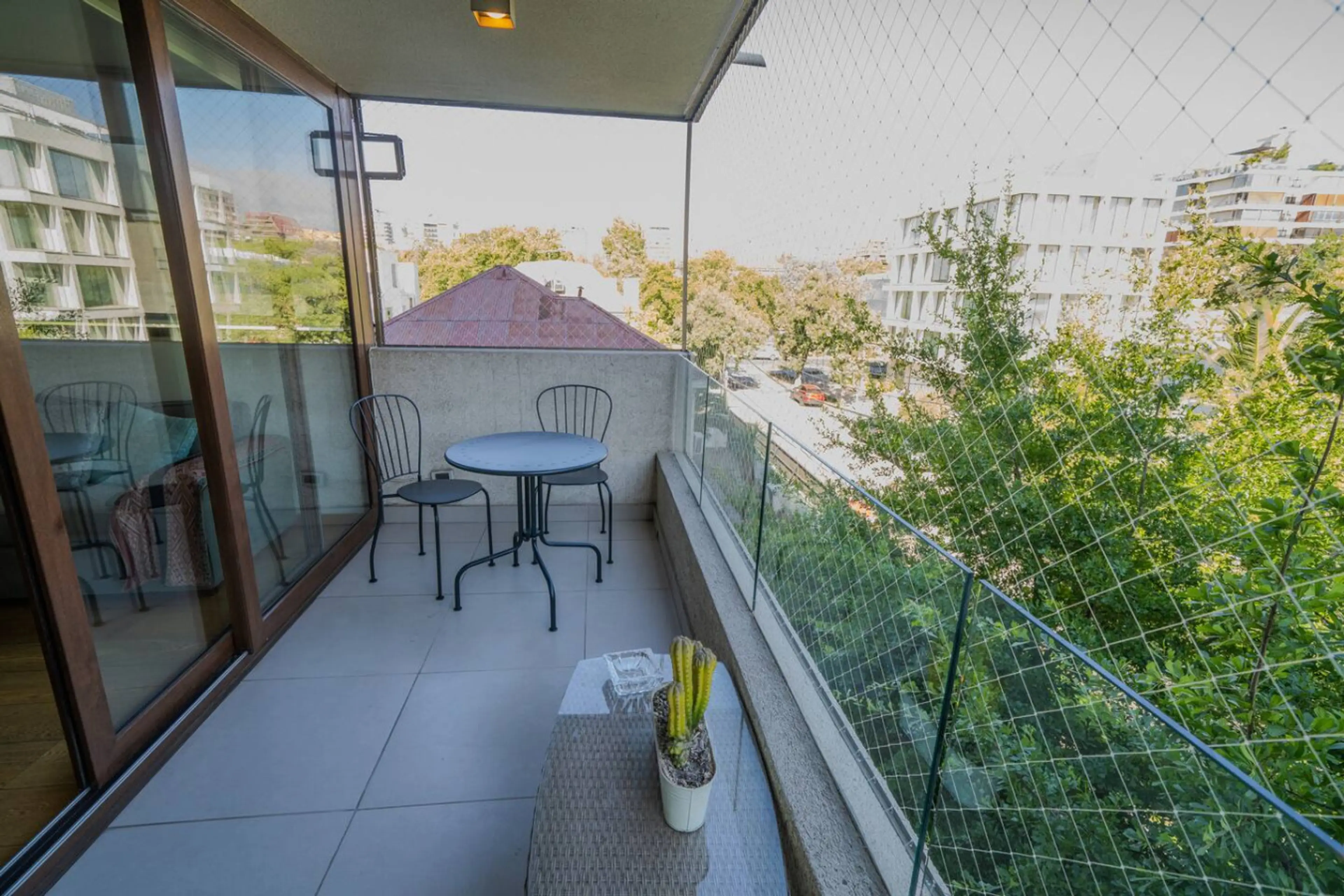 Espacioso y luminoso departamento en calle tranquila de Providencia. Disfruta de un amplio living, terraza equipada y vista parcial a la cordillera. Cuenta con 2 habitaciones (principal en suite con balcón privado y cama doble; segunda con cama nido) y 2 baños. Edificio silencioso con piscina y pat...